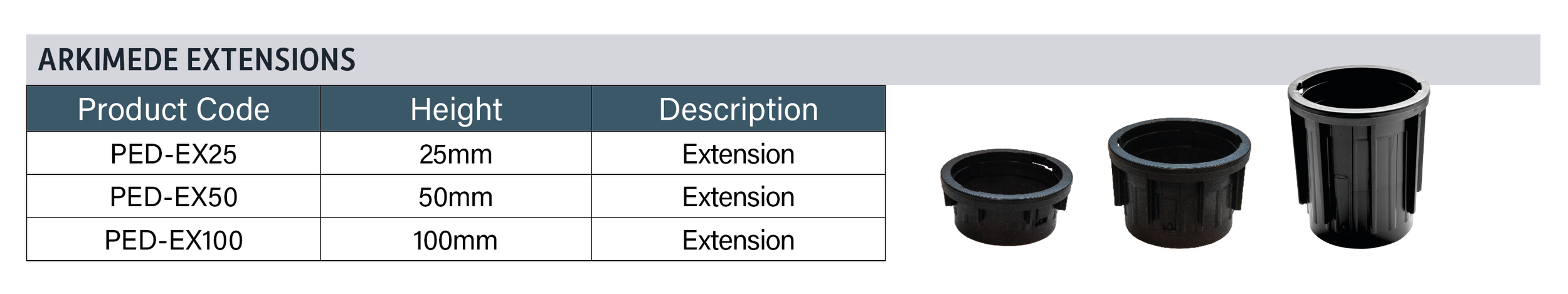 ARKIMEDE LINE The most innovative support, with a complete line of accessories that enable you to reach different heights to optimise your installation.