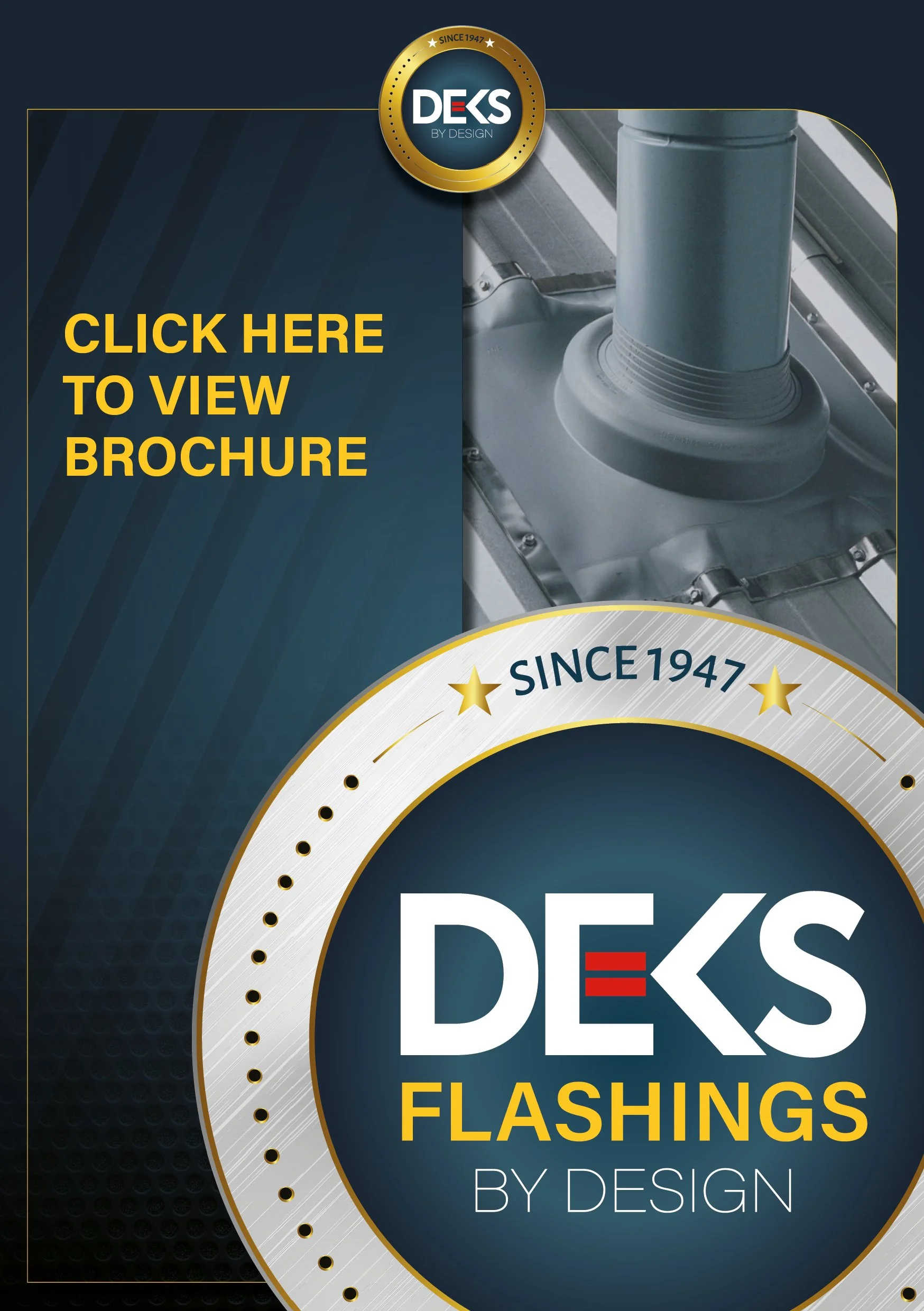 DEKS are the original creators of the Dektite pipe flashing, created in 1947. Our range consists of flashings for metal, plastic, glass, tile and slate roofs, making virtually any penetration through any roof type watertight....Our brands, Dektite, Seldek and Rapid Flash flashing are your first choice for a purpose made, watertight, lead-free flashing solution. As the global leading brand of rubber pipe flashings, our products are made to the highest standard, fully tested and each unit is hand inspected before leaving the factory. Made from quality EPDM Rubber or Silicone, Dektites can be used on temperatures from -50° to 200° (or 250° intermittently), are highly UV resistant and are quick and easy to install. EPDM Rubber will operate between -50° to 115° constantly and up 150° intermittently (30 mins or less), Silicone will operate between -50° to 200° constantly and up to 250° intermittently (30 mins or less). Dektites are used every day to seal penetrations from 5mm to 760mm, on both domestic and commercial buildings. Common applications include Chimney Flues, Spiral Ducting, Fume & Dust Extraction, Solar Panels, Soil Pipes, Fall Protection Systems, Signage Frames and more.