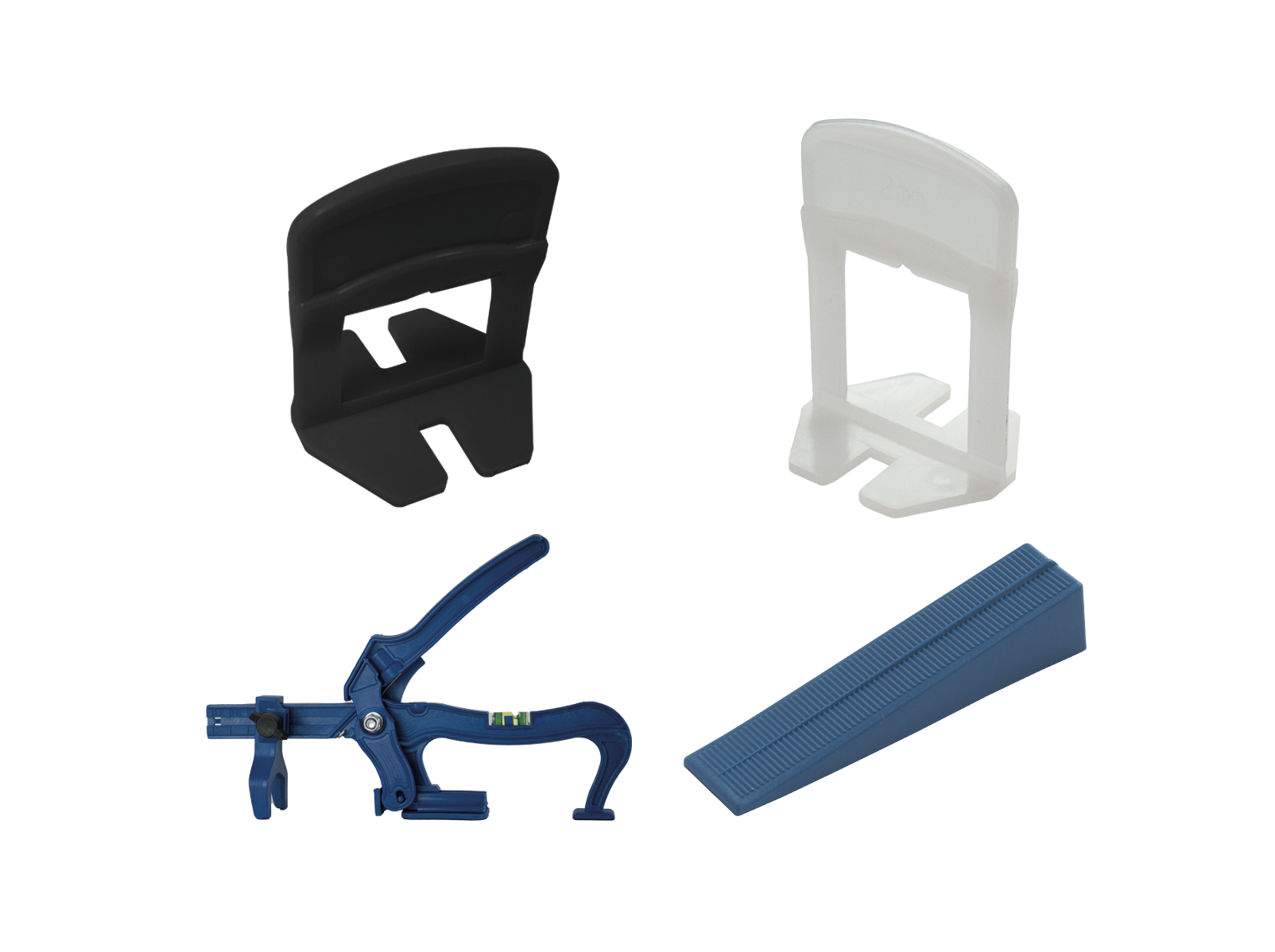 Made of recycled plastic material and used as a levelling system and spacer for floor and wall tiles of various sizes and thicknesses.
